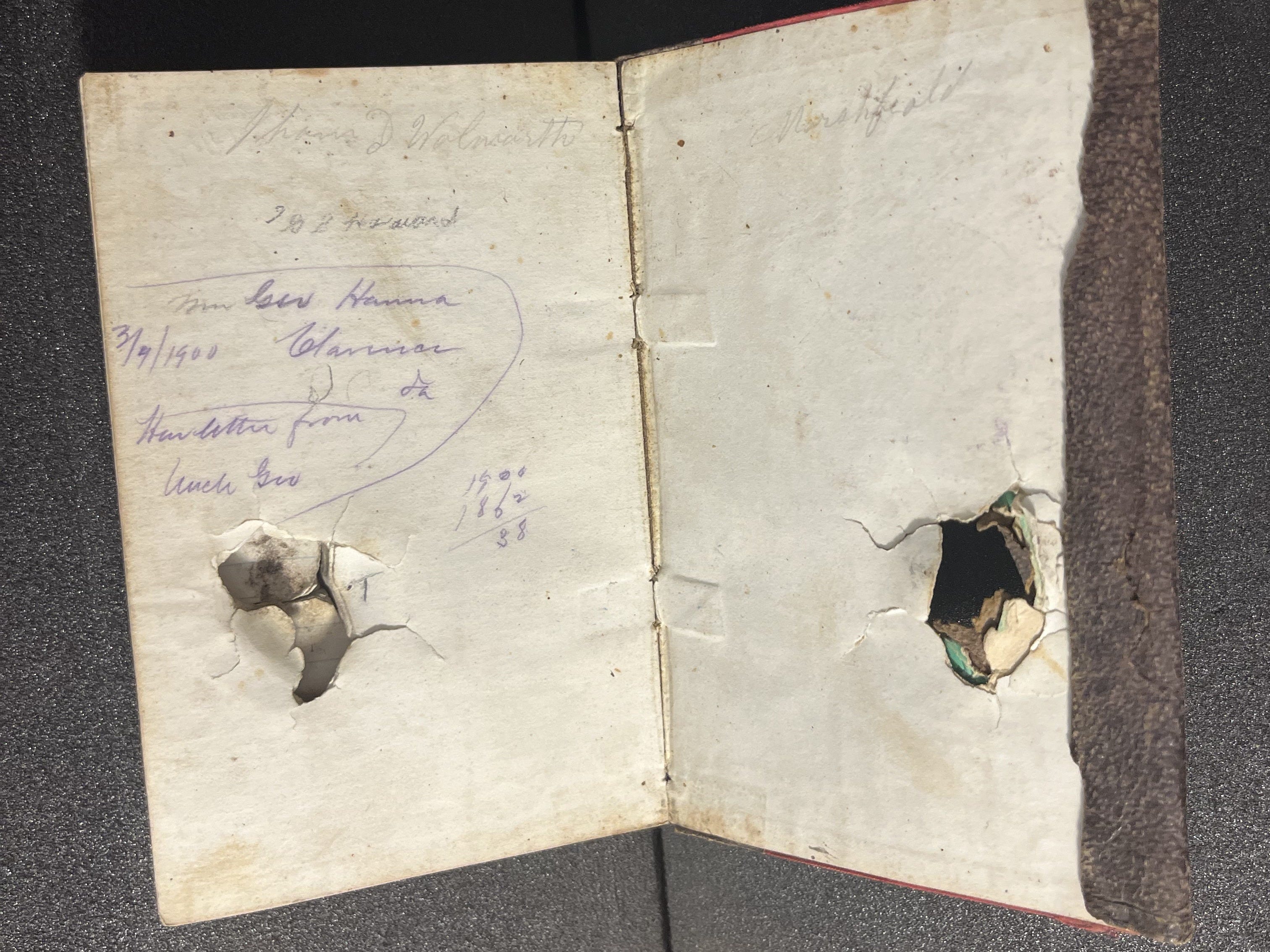 I whispered questions to my mom who whispered back facts, locating us in history since I didn’t even know when the Civil War began or ended. Both our thumbs whispered over pages that held the lived experience of that history, especially the three diaries we requested, one of which was shot through with a bullet.